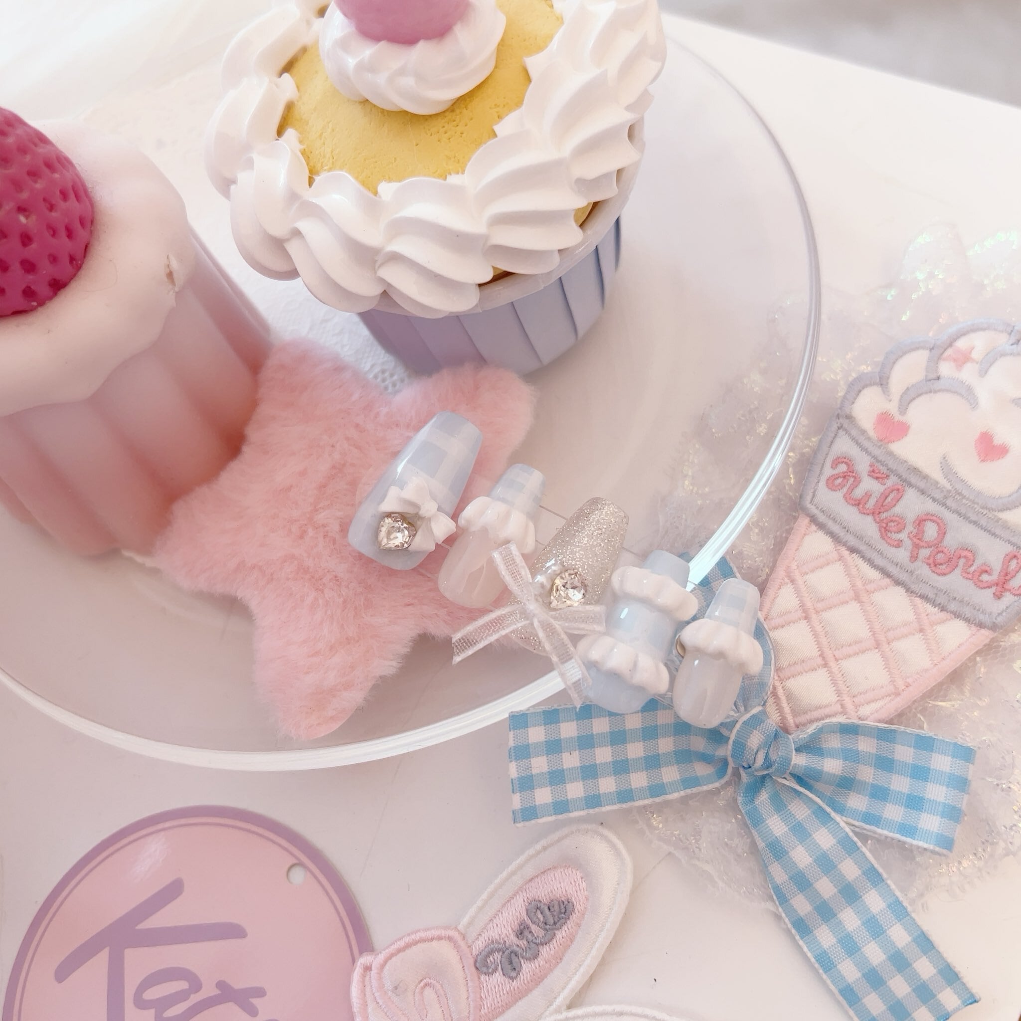 「pale blue pattern」ネイルチップ 水色ネイル チェックネイル